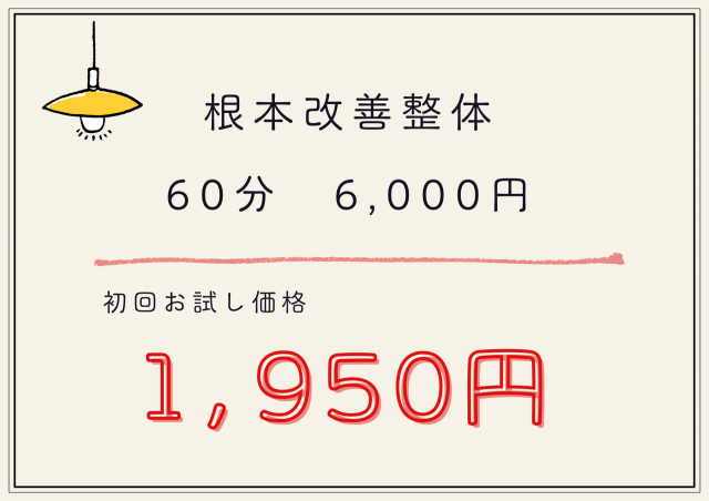全身調整 90分 8,800円 部分調整 30分 5,500円 |